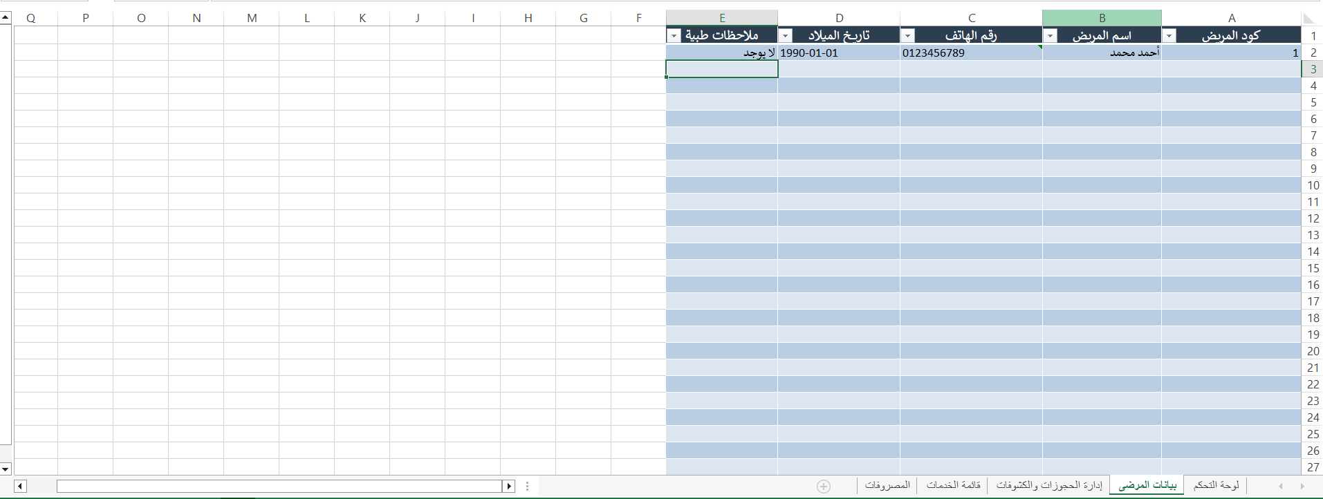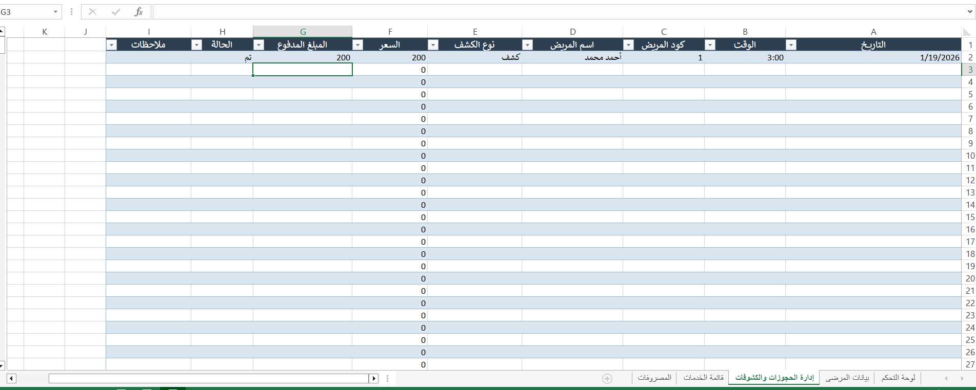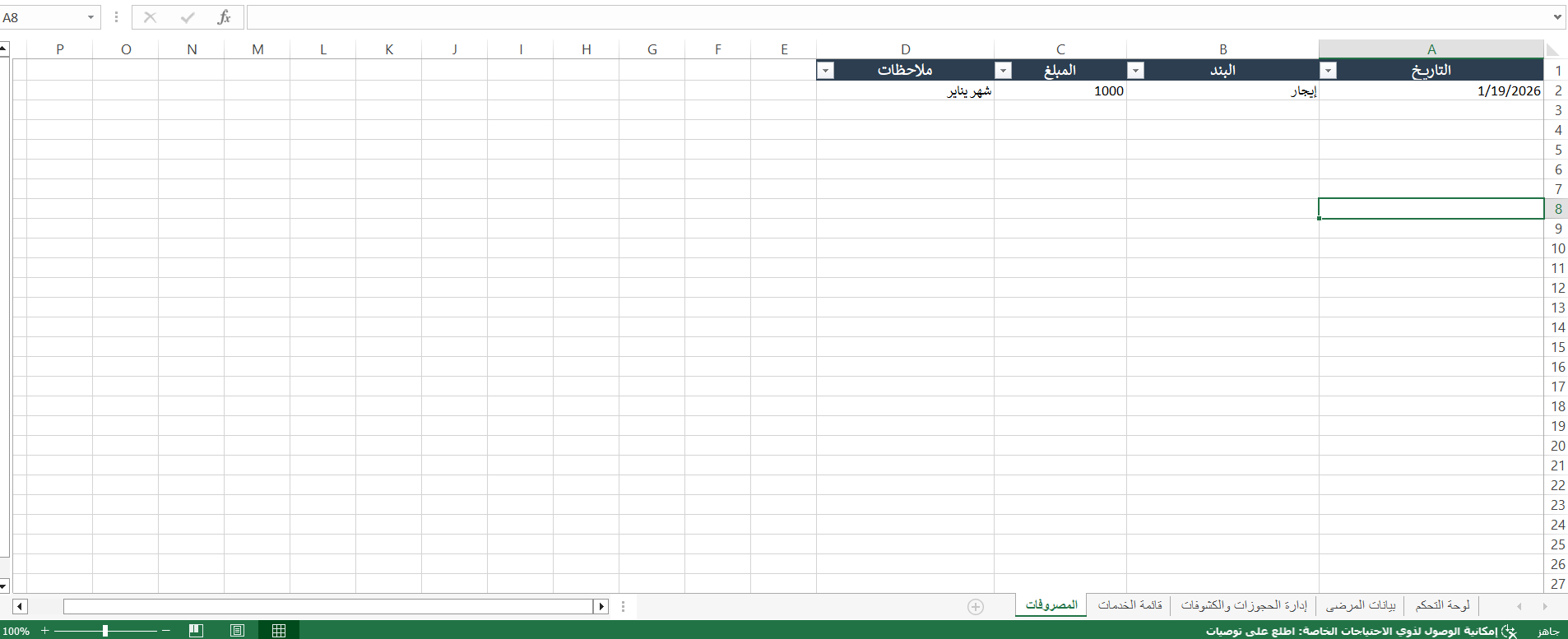 ملف إكسيل متكامل مصمم خصيصاً لإدارة العيادات الطبية بكفاءة عالية، يوفر لك: